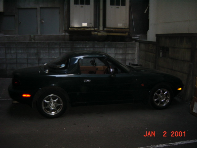 写真が見にくいけど、グリーンのロードスター。